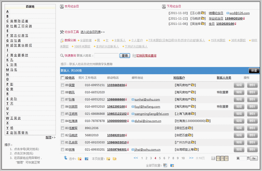 中有权限客户的全部联系人的列表显示。