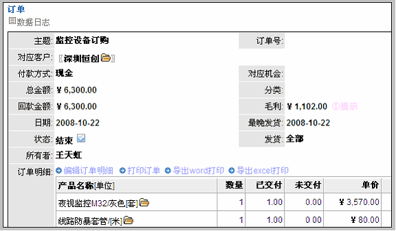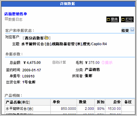 对于合同、订单和店面型销售单,均可自动计算这笔单子的毛利,这个功能称之为订单毛利。