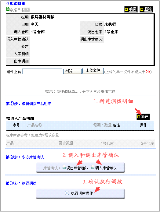 具体操作过程如下: 1新建库间调拨单 新建库间调拨单时,确认调入库和调出库 点击保存。 2 编辑调拨产品明细 点击“明细和执行”按钮,进入调拨单操作界面,编辑调拨明细。如下图: 在这里我们看到,分3步执行调拨。首先是新建调入产品明细。如上图的新建按钮位置。录入产品后,看到如下图所示的产品明细。 双方库管确认 录入调拨明细后,需要双方的库管确认。如下图: 调入库管和调出库管分别点击确认。双方库管确认后,“执行调库操作”的按钮出现链接。 注意:如果在确认时出现核对库存的提示,说明调出库的库存小于需要调入的量。这种情况下,可以修改调入和调出库,重新确认;或者修改调拨明细,重新确认。 确认执行 只有当双方的库管都确认后,“执行调库操作”的按钮才出现链接。如下图: 点击执行调库操作,库间调拨完成。 库存调拨单库管撤销确认的功能 说明 在库存调拨确认执行之前,出库库管和入库库管均可撤销自己对调拨单的确认。 在调拨遇到问题需要中止时,可以撤消后修改或删除调拨单数据。 注意:这个撤销功能是出入库库管的撤销,与调拨单全单的撤销不同。在于: 出入库库管的撤销发生在调拨单执行前; 调拨单全单的撤销发生在调拨单执行后。 操作 在调拨单内,库管确认的按钮,当库管确认后,即出现允许撤销确认的链接如下: 此界面可实现库管确认的撤销。 |