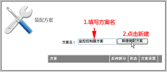 进入装配方案设置界面,如下图: 填写方案名,点击新建