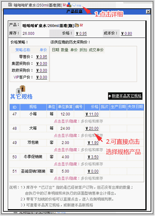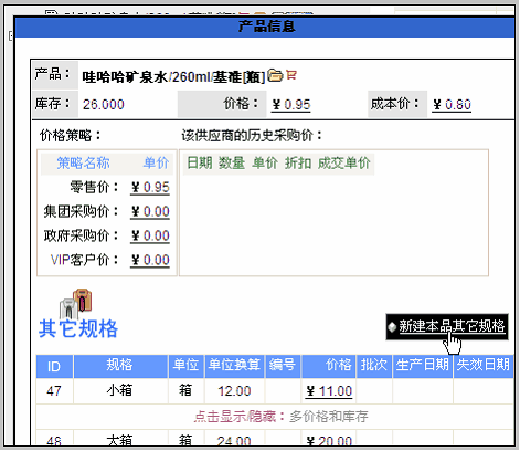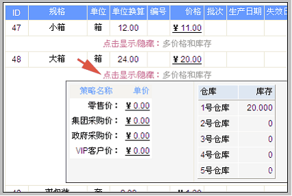 在这里也可以查看多规格产品的库存,方法是点击