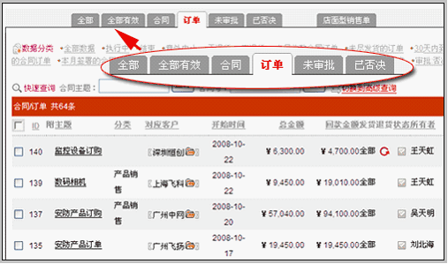 合同订单列表界面的标签变化