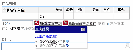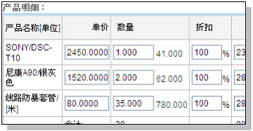 4.产品明细 查询并选择产品,输入数量,自动计算总价。
