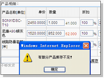 如果后面数字都是绿色的,则说明库存大于销售单数量,够发货。如果是红色,则表明小于销售单数量,不够发货。 如果够发货,显示下面的提示 如果不够发货,看到的界面如下