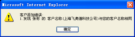 保存客户的时候,对于“助记名称”重复或者“客户名称”重复的客户,提醒您: