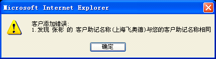 情况2:客户添加错误,发现 XX 的客户助记名称(XXXX)与您的客户助记名称相同