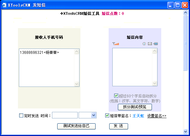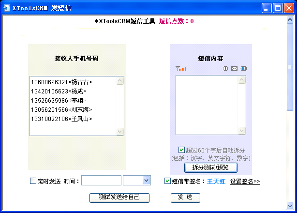 注意:这个操作的窍门是,在没有选择完接收人之前,不要关闭发短信窗口 |