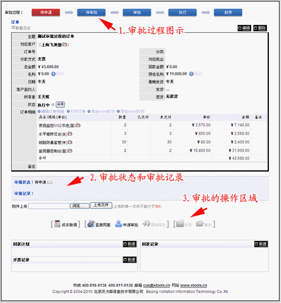 可以看到,审批启用后,订单视图中多了三个部分: