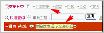 同意后,此数据在审批列表中消失。实际上是审批状态发生了变化,当前列表是有过滤条件的(今日待审批),点击“解除搜索”或者数据分类中的“全部数据”,即可看到刚审批同意的那条数据,如下图: