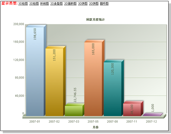 统计图查看 进入工具菜单?统计功能,点击相应统计,可看到统计图。 如下: