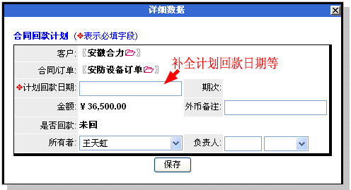 补全相应信息后保存。可看到该回款计划建立成功。如下图: