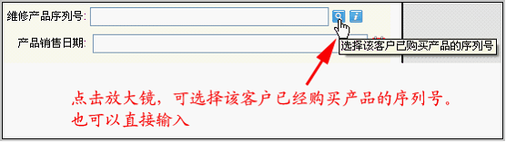 放大镜图标“选”:可选择该客户已经购买产品的序列号;也可以直接输入。