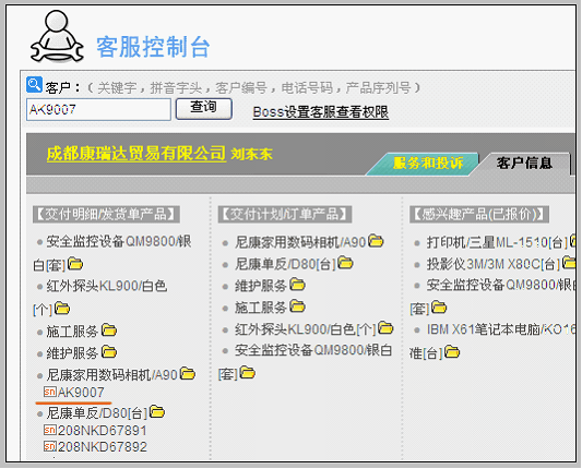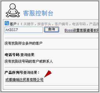 有的企业根据客户购买产品的序列号提供售后支持和服务。这种情况需要客服人员能够根据序列号查询到是哪家客户购买。