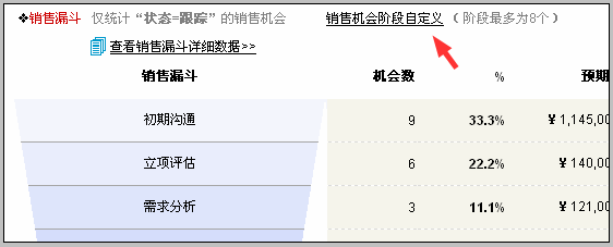 可以在销售机会界面进入设定界面。也可以在数据字典中的销售机会-漏斗进入设定界面。