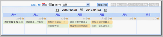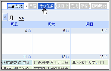 这里所显示的客户,是当前周月视图中的日程、任务和行动历史所涵盖的客户。客户名称后面带有五角星的表明该客户为热点。