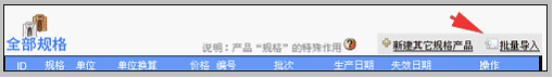 进入批量导入本产品规格的界面 如下所示: