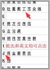 如果客户姓名是英文,您可以点击百家姓每行开头的英文字母查找该联系人。