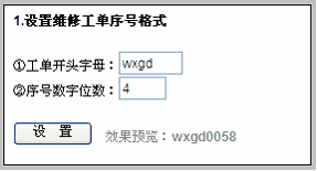 设置完成后,工单序号会在新建维修工单时自动生成。这种流水号的方式是不可重复占用的,比如wxgd0002号单据被删除,则此号码空缺,不可被再次占用,确保反映维修工单的先后顺序。 |