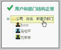 添加部门 对于新注册的系统来说,公司部门结构中只存在部门——公司,和部门人员——boss。 新建用户后,默认所属部门均为公司根部门,默认上级为boss。 这时,您可以照公司实际部门结构在公司根部门下添加子部门。