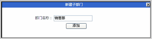 2.点击按钮“新建子部门”,弹出新建子部门页面。添写部门名称,如下图: